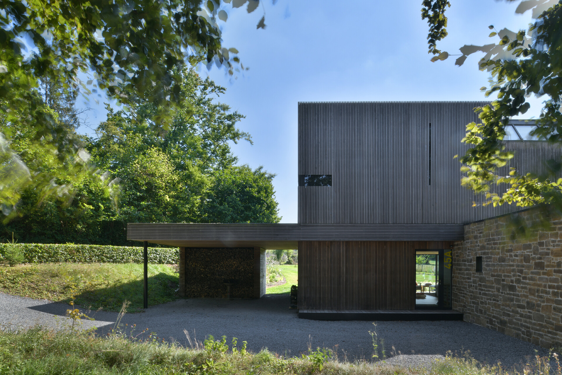 Les finitions extérieures soignées minimisent les raccords entre les matériaux et donnent une lecture simple et contemporaine des volumes construits.