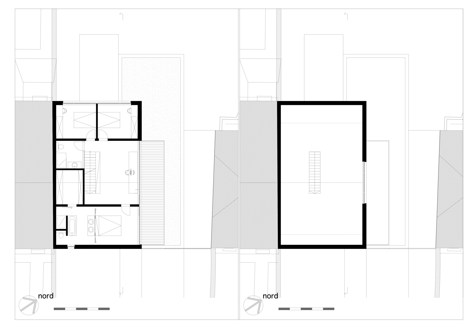 Le nouveau volume à 2 pans s’aligne sur l’habitation mitoyenne.