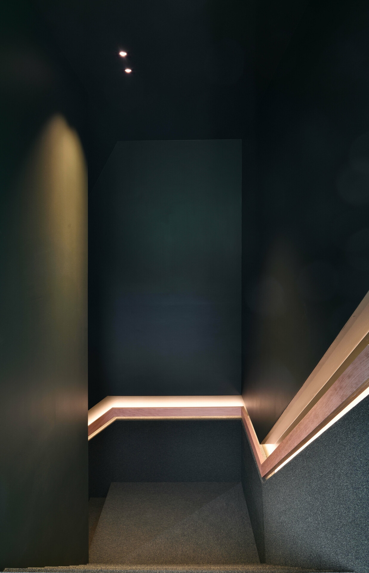 Au sein du bâtiment, les espaces intérieurs évoluent progressivement des zones d'accueil et de réunion vers les zones de travail. Un espace dédié aux réunions d'équipe, pauses, temps libres et activités complémentaires surplombe le plateau des bureaux et s'ouvre totalement sur la colline. Ce cheminement "vert sapin", physique et visuel, en contact permanent avec la nature, distribue de manière progressive et naturelle les espaces adaptés aux différentes fonctions. Au cœur du projet, un espace polyvalent en connexion avec l'environnement extérieur et les espaces de travail favorise les interactions et suscite les échanges.